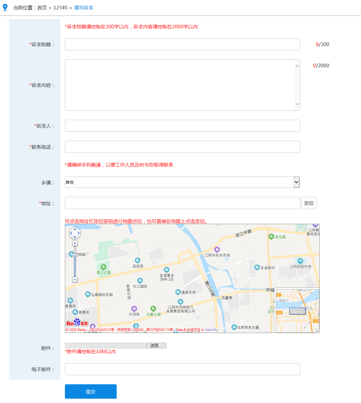 圖2 填寫訴求件內容(有“*”的為必須填寫部分)
