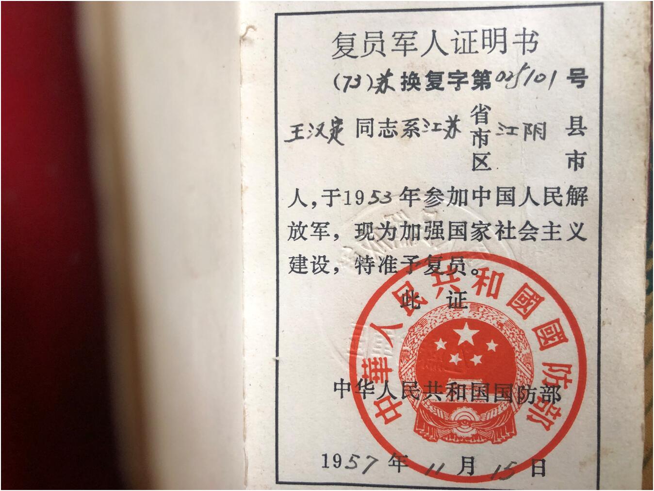 王漢定同志,徐霞客鎮上東村人,1929年1月出生,1953年春,參加中國人民志愿軍,1956年5月加入中國共產黨。今年已是91歲高齡的他曾參加過抗美援朝戰爭,提起那段難忘的烽火青春,老人依然激情澎湃。