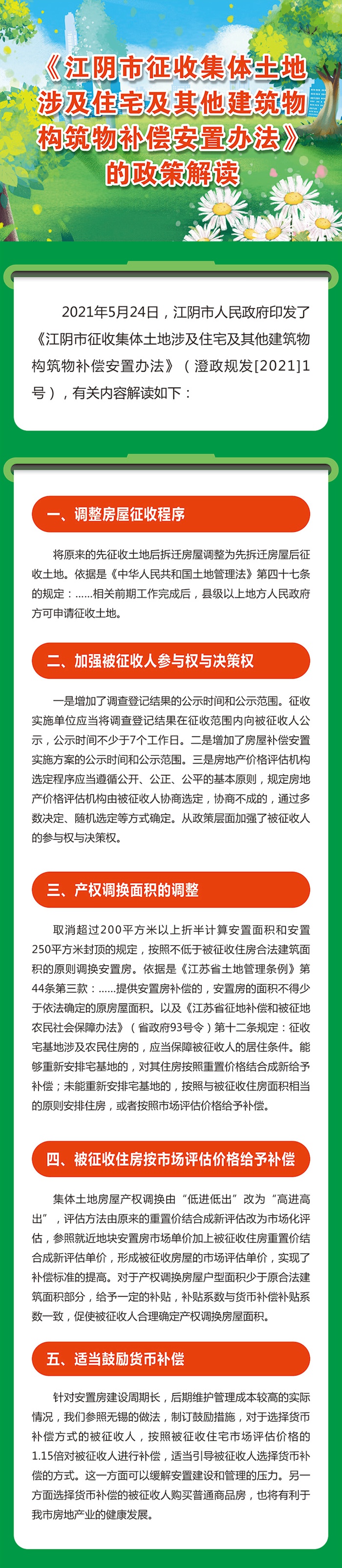 《江陰市征收集體土地涉及住宅及其他建筑物構筑物補償安置辦法》的政策解讀