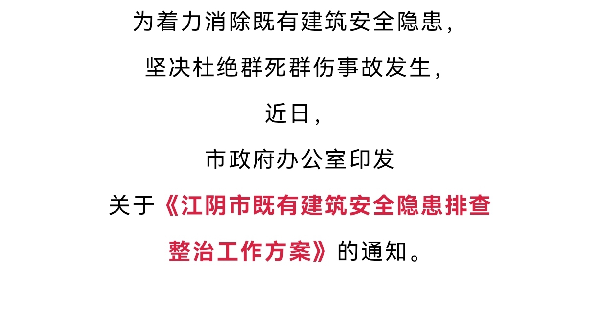 | 內容概述 | 《江陰市既有建筑安全隱患排查整治工作方案》的政策解讀 | ||||
