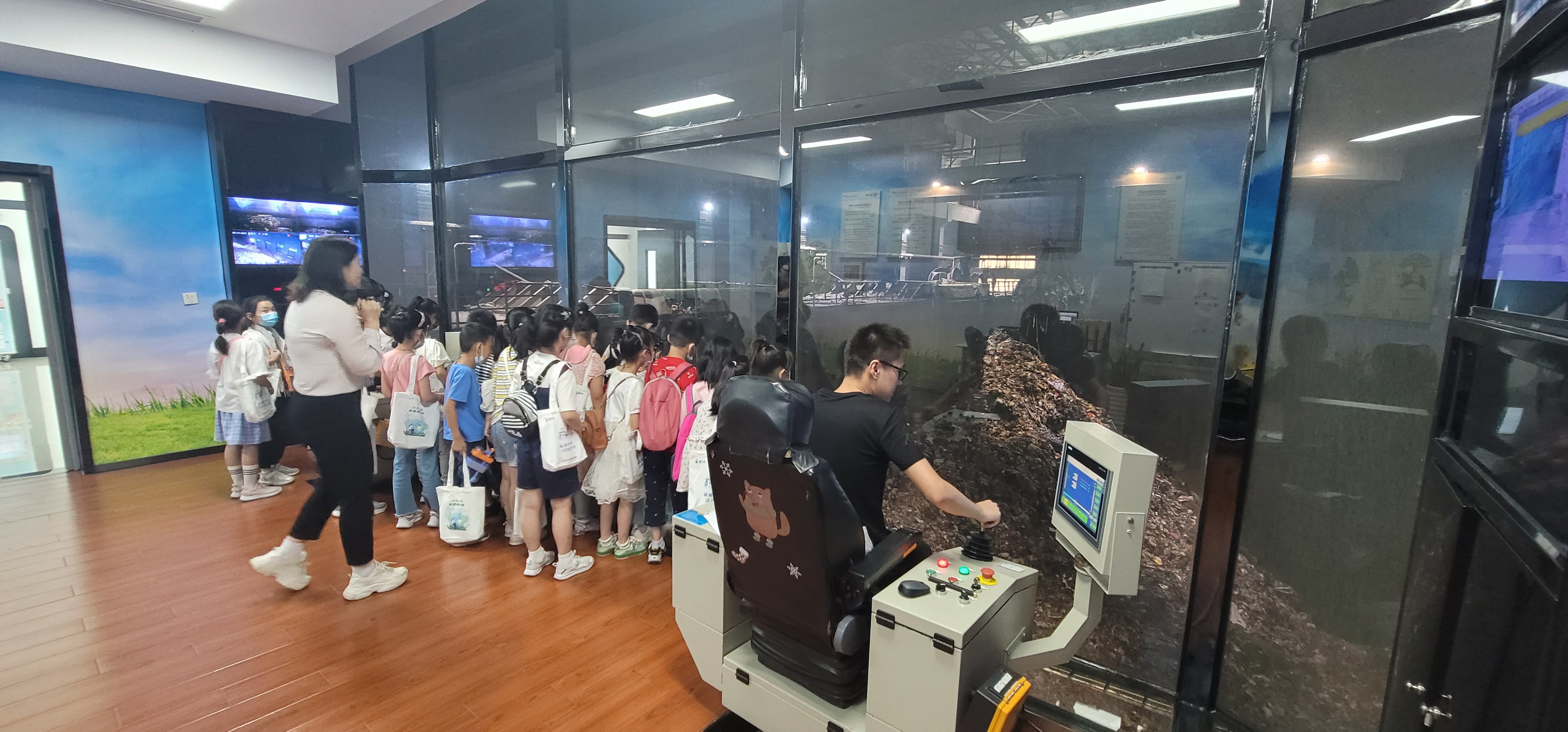 隨后,工作人員帶領大家分別參觀了VR展示中心、中央控制室、垃圾吊控制室等地方,每到一處,工作人員都細致講解垃圾焚燒處理過程和相關知識,介紹垃圾焚燒發電的程序。在中央控制室,年輕的工程技術人員坐在大屏幕和電腦前忙碌著,所有操作實現了自動化控制,各種儀表和顯示屏實時報告著各工序的運行情況,全自動化的工藝既新奇又震撼。