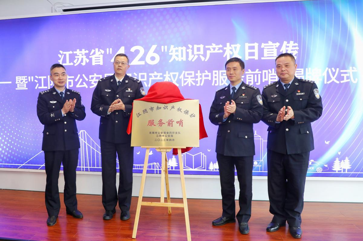 創新是引領發展的第一動力,保護知識產權就是保護創新。4月26日上午,江蘇省公安廳食藥環偵總隊和無錫市公安局在江陰聯合舉辦江蘇省“4.26”知識產權日宣傳暨無錫市“知識產權保護服務前哨”推廣活動,江蘇省公安廳食藥環偵總隊總隊長劉慶陽,無錫市公安局黨委副書記、常務副局長胡楊,江陰市副市長、公安局局長許昌出席活動并致辭,共同為“江陰市公安局知識產權保護服務前哨”揭牌。