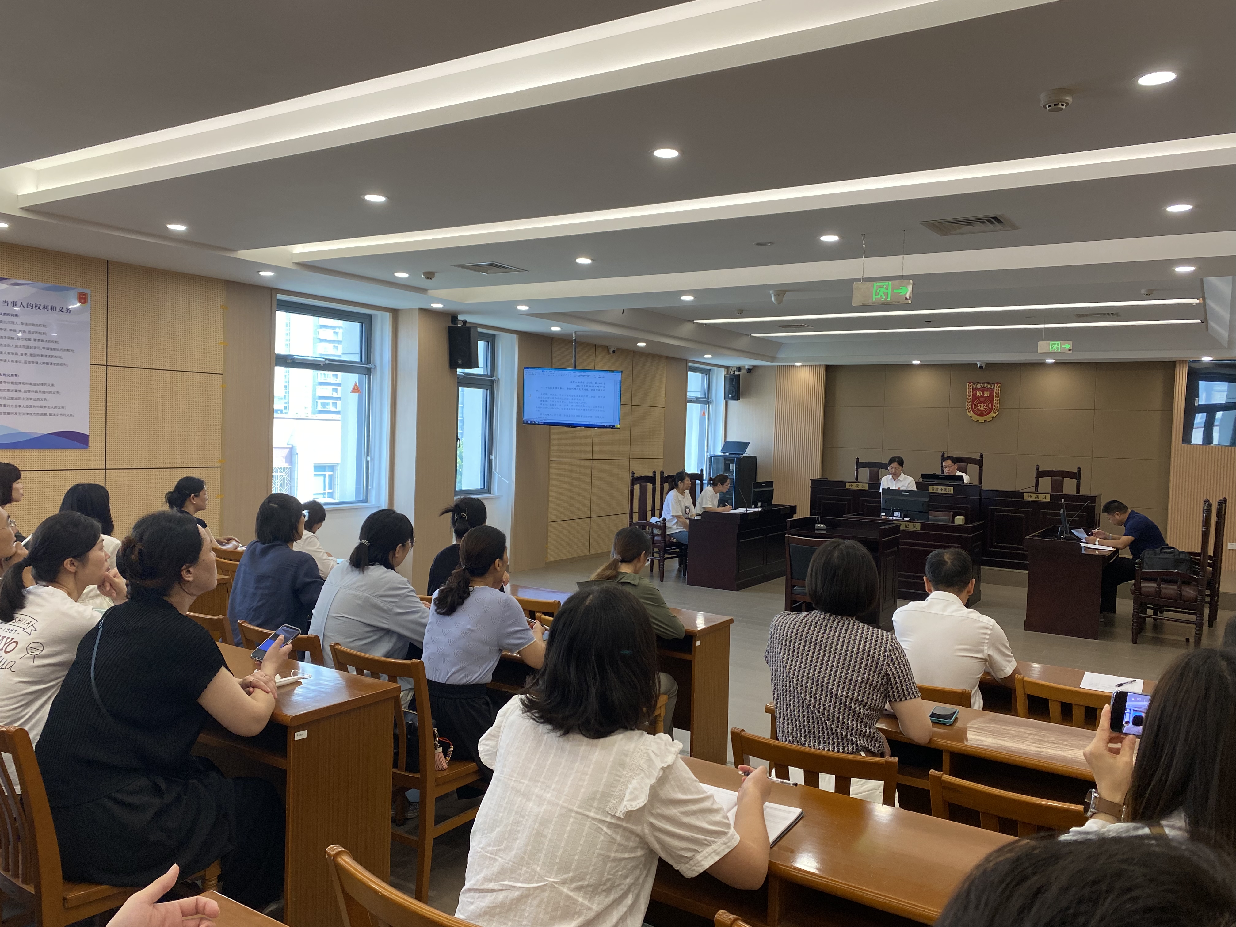 活動當天,市仲裁院公開審理了工傷待遇爭議、勞動報酬爭議等兩起典型勞動爭議案件,經過陳述答辯、舉證質證、庭審調查、庭審辯論、最后陳述等程序,將事實經過、爭議焦點及法律關系進行了清晰呈現。60余名市民代表、企業代表和律師代表參加現場庭審觀摩,沉浸式體驗“以案說法、以庭釋法、以審普法”,深入了解了仲裁機構工作職責和案件辦理流程。