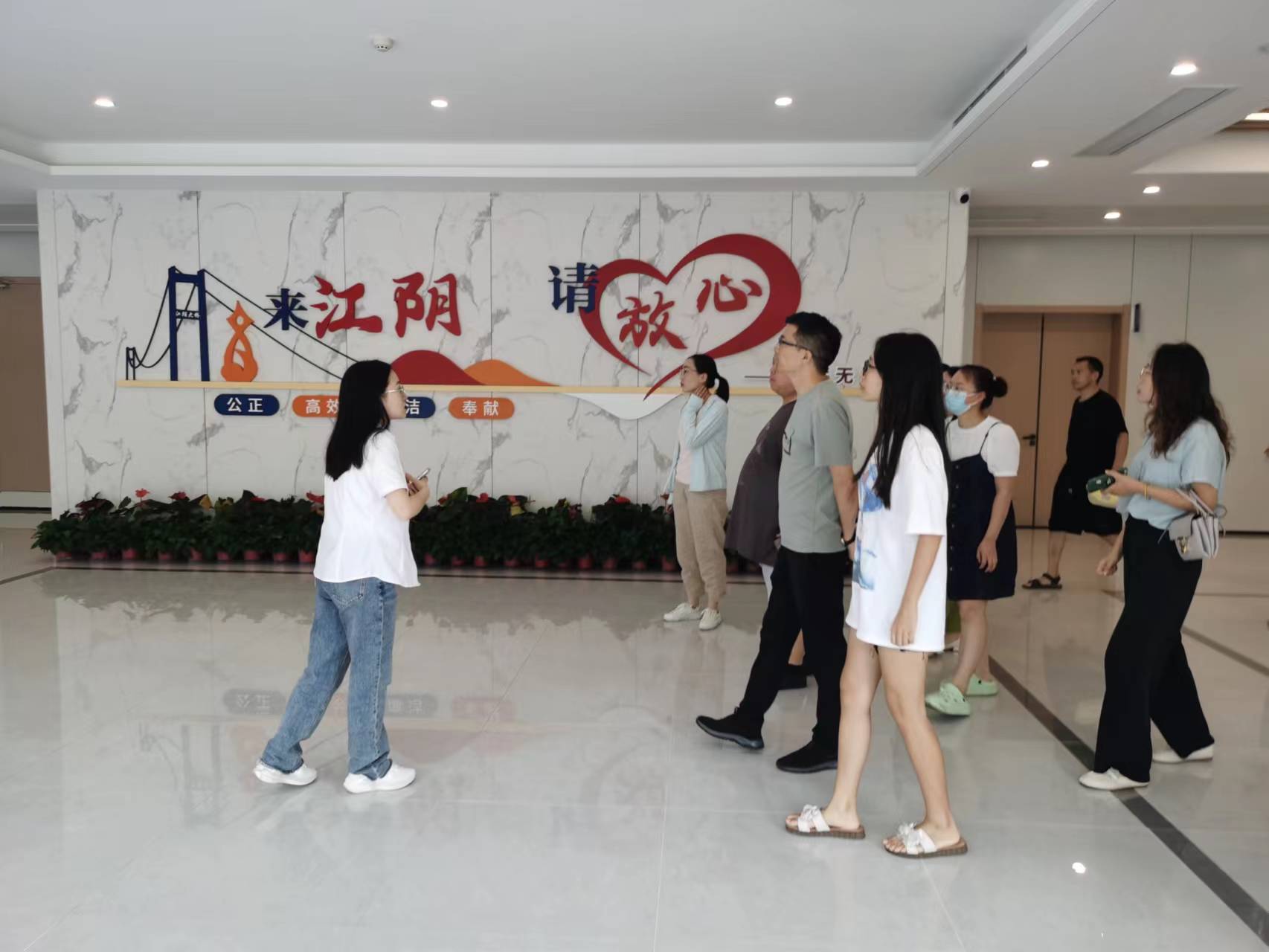 庭審結束后,觀摩人員參觀了江陰市勞動關系聯合調處中心,并參與座談。市仲裁院骨干仲裁員結合案例及庭審實踐,就勞動合同法和勞動仲裁法律法規進行了解讀,為參會的企業代表進行“法治體檢”,現場解答常見用工管理疑難問題,有針對性地提出防范法律風險的措施辦法,服務企業規范勞動用工、構建和諧勞動關系。