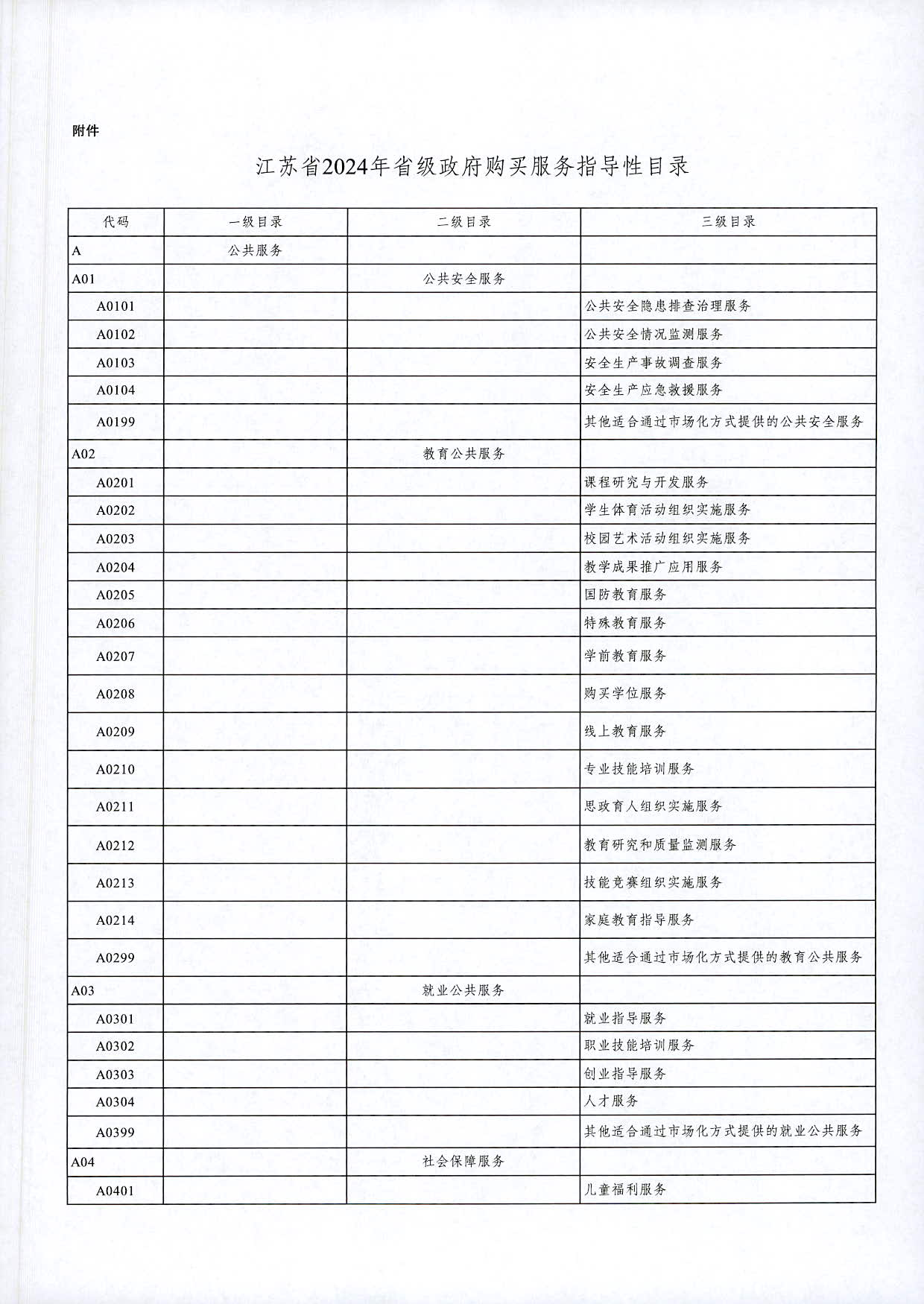附件:關于印發江蘇省2024年省級政府購買服務指導性目錄的通知(蘇財購〔2023〕85號)
