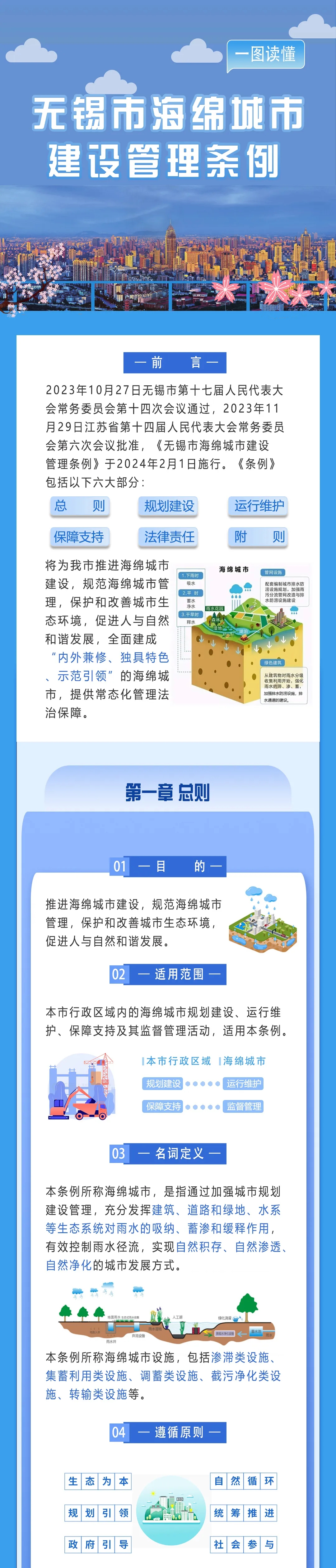 《無錫市海綿城市建設管理條例》已由無錫市人民代表大會常務委員會通過,經江蘇省人民代表大會常務委員會批準,自2024年2月1日起施行。制定該《條例》,旨在發揮法治工作穩預期、利長遠、固根本的作用,為規范我市海綿城市管理、保護和改善城市生態環境,促進人與自然和諧發展,提供法治依據與保障?,F將有關要點梳理出來,供學習參考。
