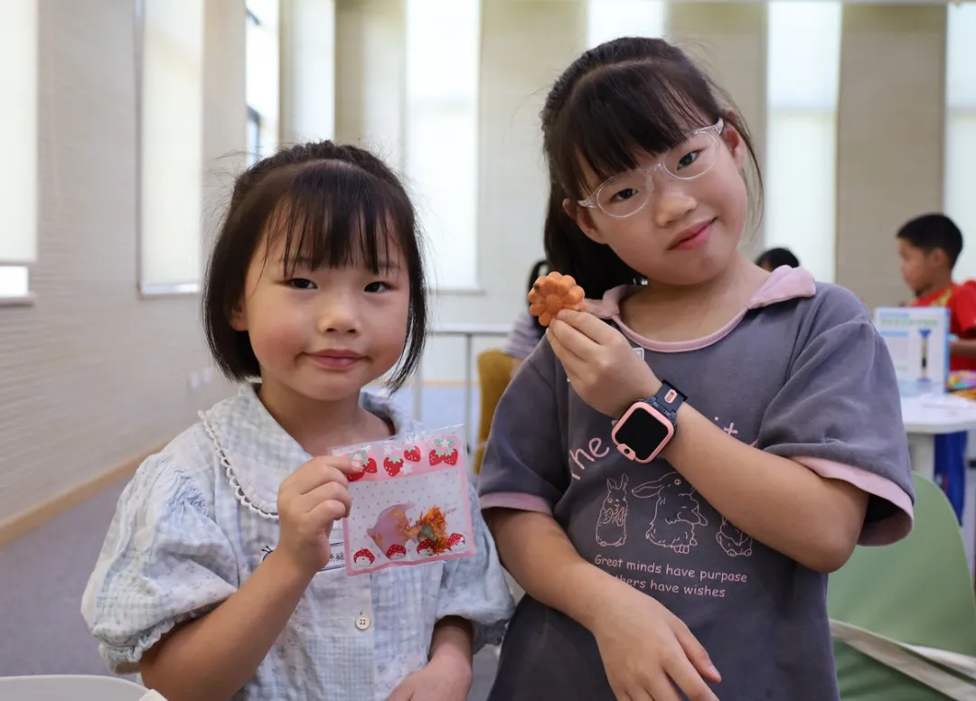 指紋印在紙上看不出來,怎樣才能讓它顯現出來呢?小朋友們在老師的帶領下,利用碘液進行神奇的指紋提取實驗。將天然植物油、精油、色素與各種天然添加劑巧妙地融合在一起,調配原料、攪拌、入模、脫模……每一塊手工皂都成為了獨一無二的藝術品。