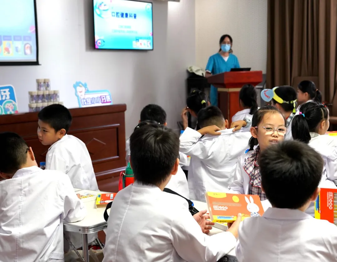 在江陰口腔醫院的課堂上,口腔醫生詳細講解了口腔的基本結構、功能以及常見的口腔問題,帶領小朋友深入了解了不良習慣對牙齒的危害,如蛀牙、牙齦疾病等。同時,告訴了小朋友換牙期間的重要注意事項,如保持口腔衛生、避免咬硬物等。小朋友們聚精會神地聽著,對牙齒的奧秘充滿了好奇。隨后,口腔醫生為小朋友們進行了細致口腔檢查,讓他們親身體驗到口腔健康的實際情況。