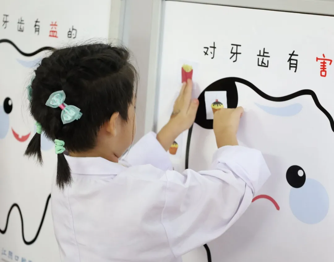 在動手互動游戲環節,小朋友們積極參與了益害食物分類、口腔牙齒繪畫等豐富多彩的互動游戲。這些活動不僅讓小朋友們對如何保護牙齒有了更深入的了解,還有效幫助大家避免或減少齲齒、牙周病等口腔問題的發生。