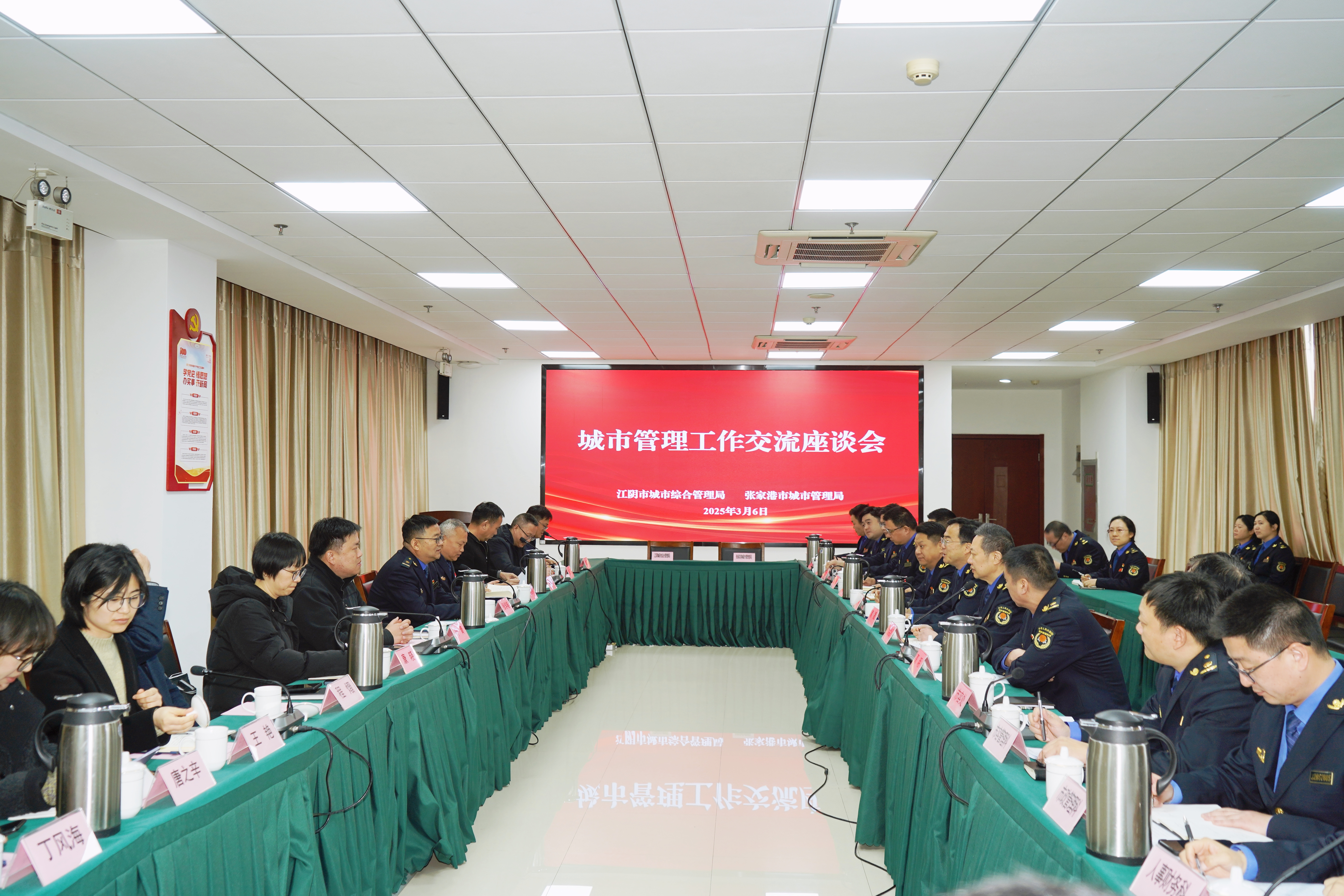 座談會上,黃晟詳細介紹了張家港市城管局在城市精細化管理、市政服務、垃圾分類、綜合執法等方面的工作舉措,并著重對“港城夜泊”“港城云哨”“中交云偵+北斗定位”等創新項目進行了分享。張學春對江陰市在市容管理、隊伍建設等方面的相關經驗進行了分享。雙方職能科室就兩地城市管理領域存在的共性、個性問題進行了熱烈交流和探討。