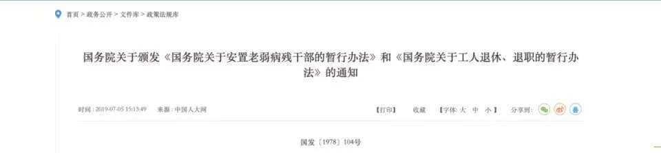 關于這一規定,根據《國務院關于工人退休、退職的暫行辦法》