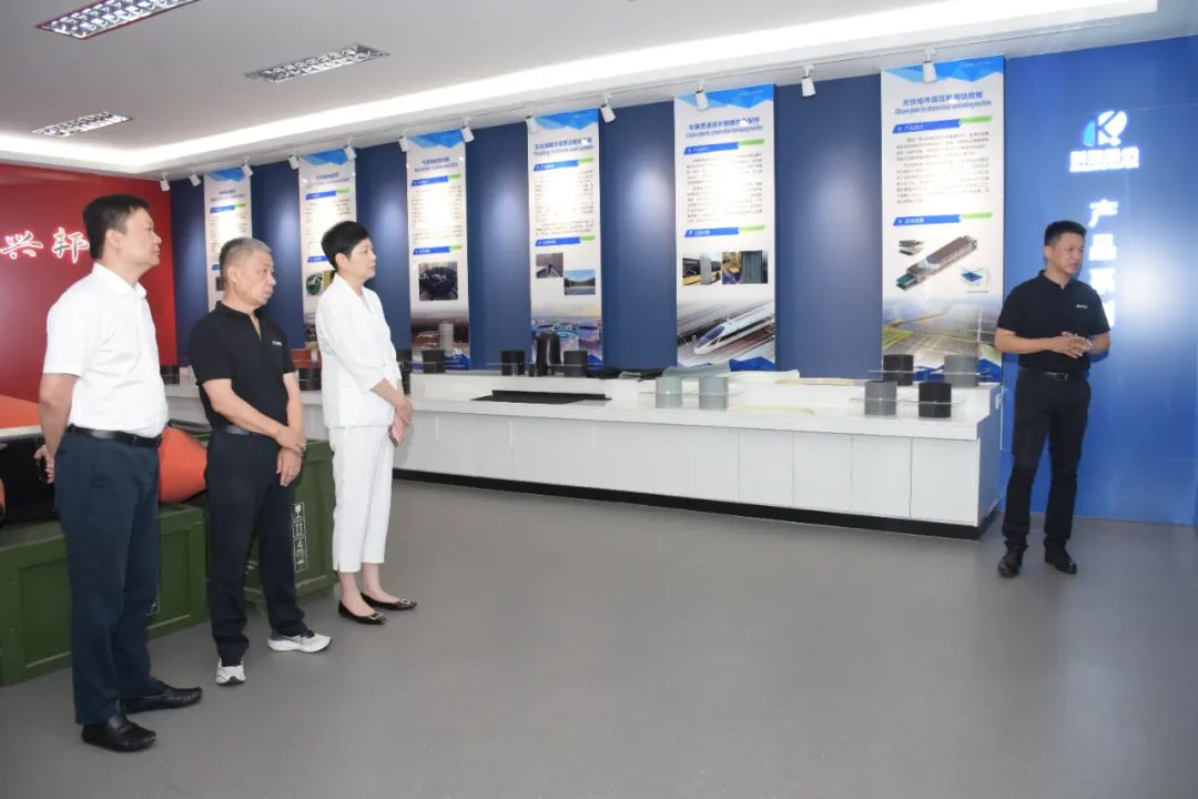 儀式前,大家共同參觀企業產品展廳,科強總經理殷海剛詳細介紹了公司在新材料領域二十余年的技術積淀,重點展示了公司在光伏材料、特種橡膠制品等領域的創新成果。