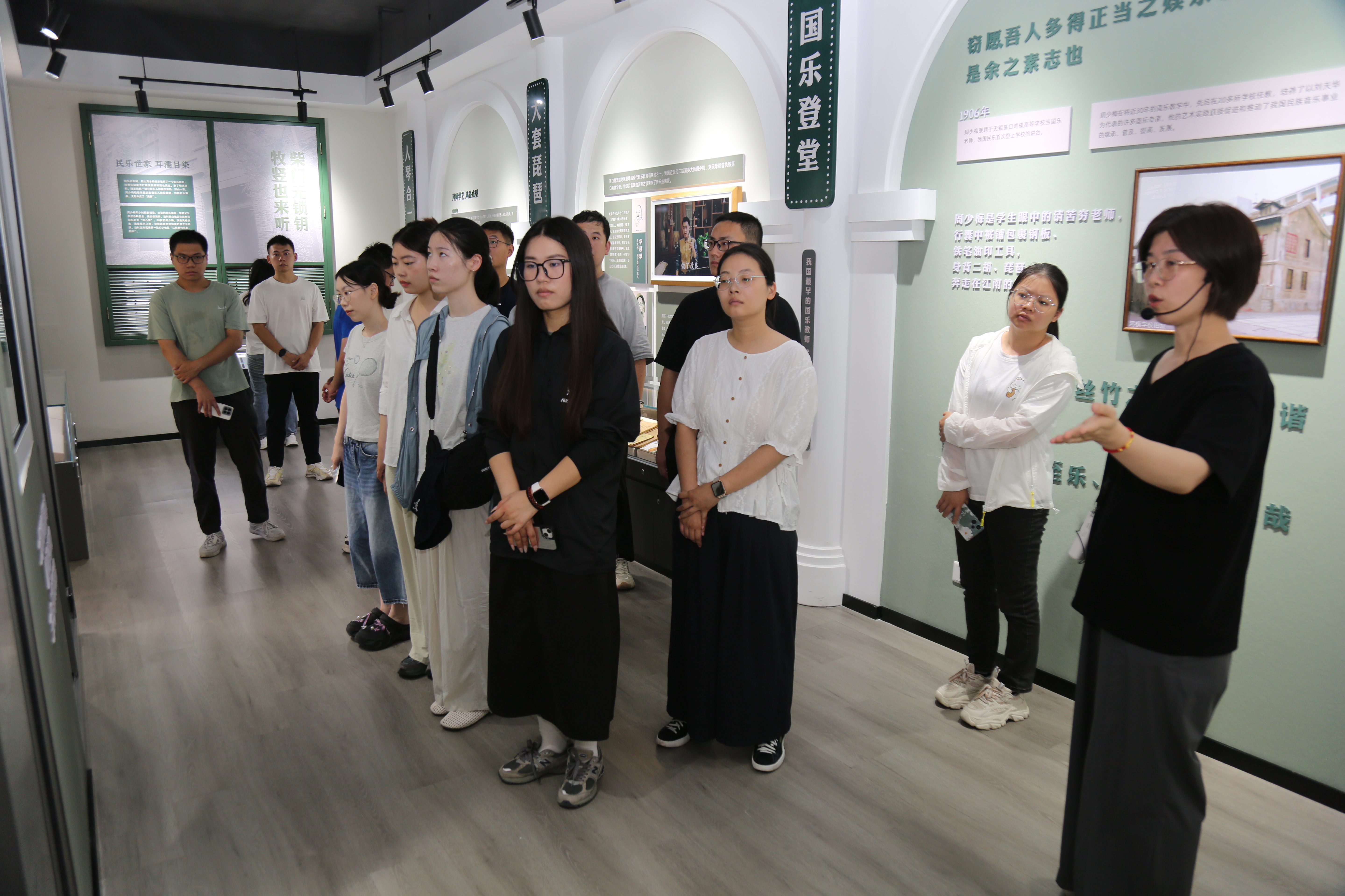 隨后,群眾代表們抵達周少梅國樂館,在講解員的引導下,參觀了國樂館的陳列區、非遺傳承展示廳及體驗區。通過實物展示、影音資料和多媒體演奏,群眾代表們系統了解了民樂大師周少梅的藝術成就及顧山鎮在傳統文化保護與傳承方面的舉措,感受到非遺文化在新時代的活力與魅力。