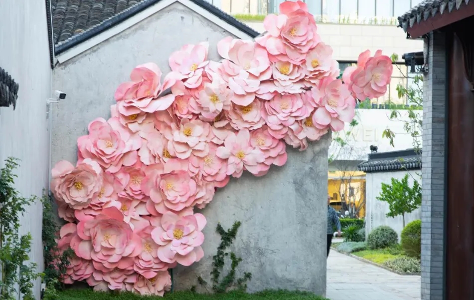 我們疊石成山、引水為瀑,用自然點綴街巷;街邊花箱與陶缸植叢,融合了藝術與生活;同時精選香樟、烏桕等鄉土樹種,通過組合造景與單點點綴,營造出靈動景觀。夜幕降臨,瓦楞燈、洗墻燈、燈籠照亮街巷,河邊射燈與霧森系統交織成光影夢幻,帶來獨特夜游體驗。