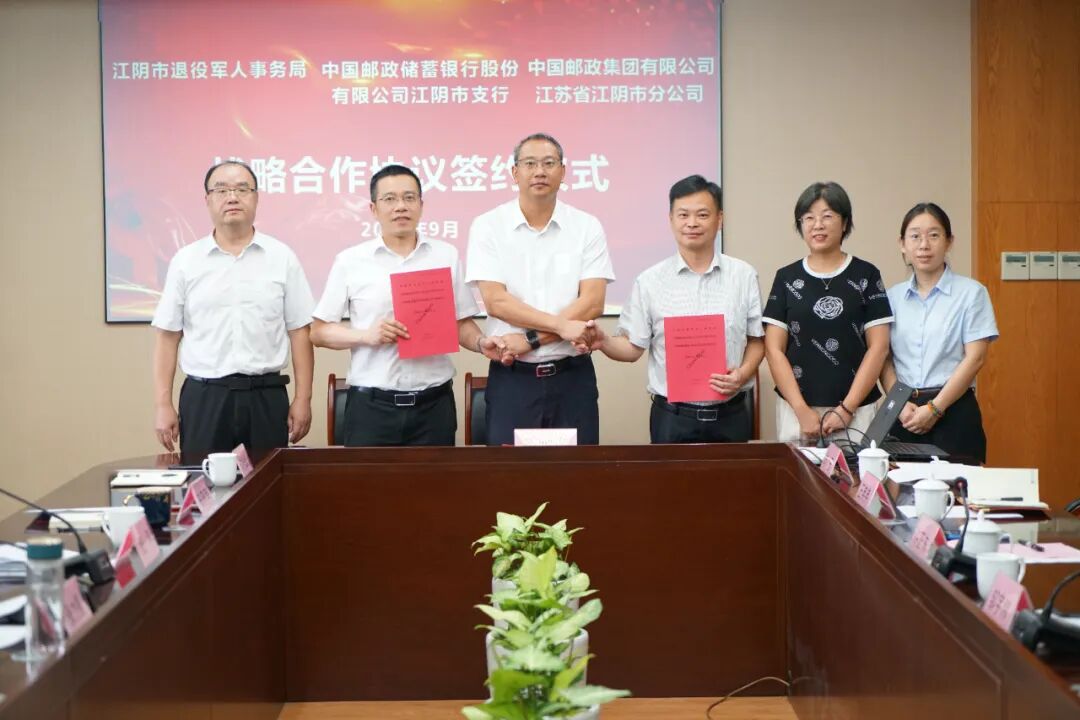 9月12日,江陰市退役軍人事務局與郵儲銀行江陰支行、郵政江陰分公司舉行戰略合作簽約儀式,圍繞退役軍人就業創業、金融支持、優待服務等領域展開深度合作,三方將共同聚焦退役軍人就業創業核心需求,整合政策、資源、產業優勢,共同為江陰打造功能完善、服務高效的退役軍人就業創業新高地注入強勁動力。