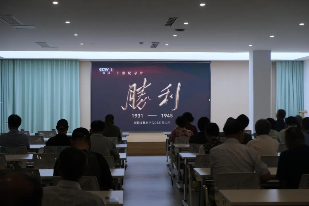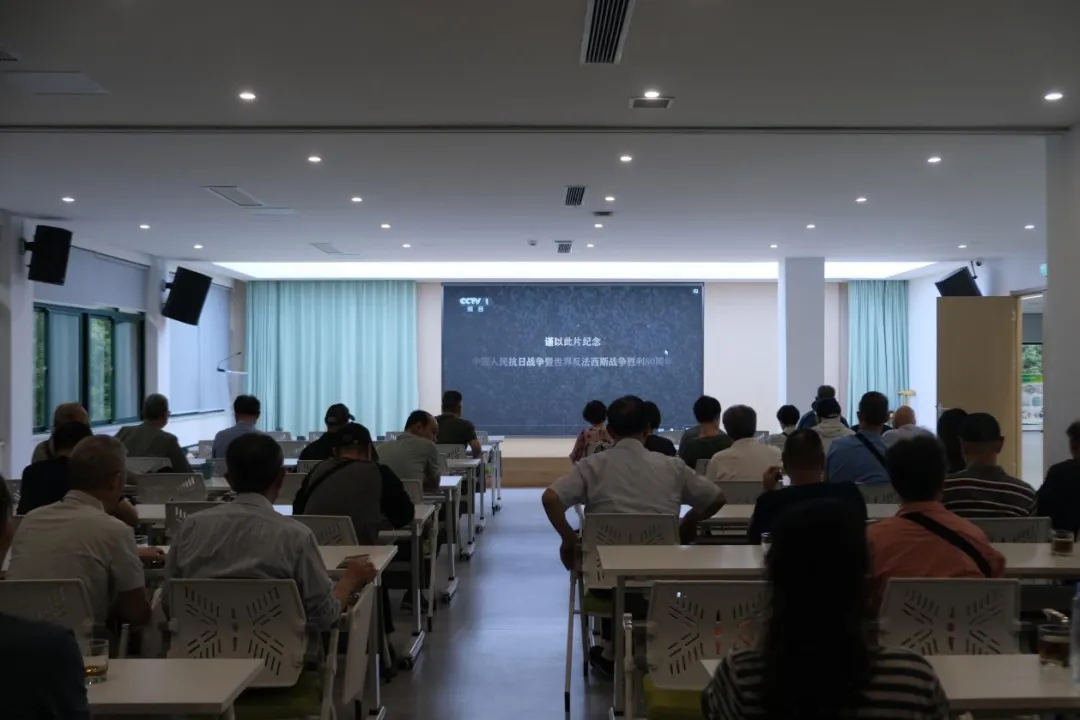 在黨史館會議室中,老同志們觀看紀念中國人民抗日戰爭暨世界反法西斯戰爭勝利80周年大型紀錄片《勝利》,深刻感悟抗戰精神的時代價值,進一步堅定傳承紅色基因、賡續精神血脈的信念擔當,在歷史的回望中汲取砥礪前行的精神力量。觀影結束后,老同志們合影留念。